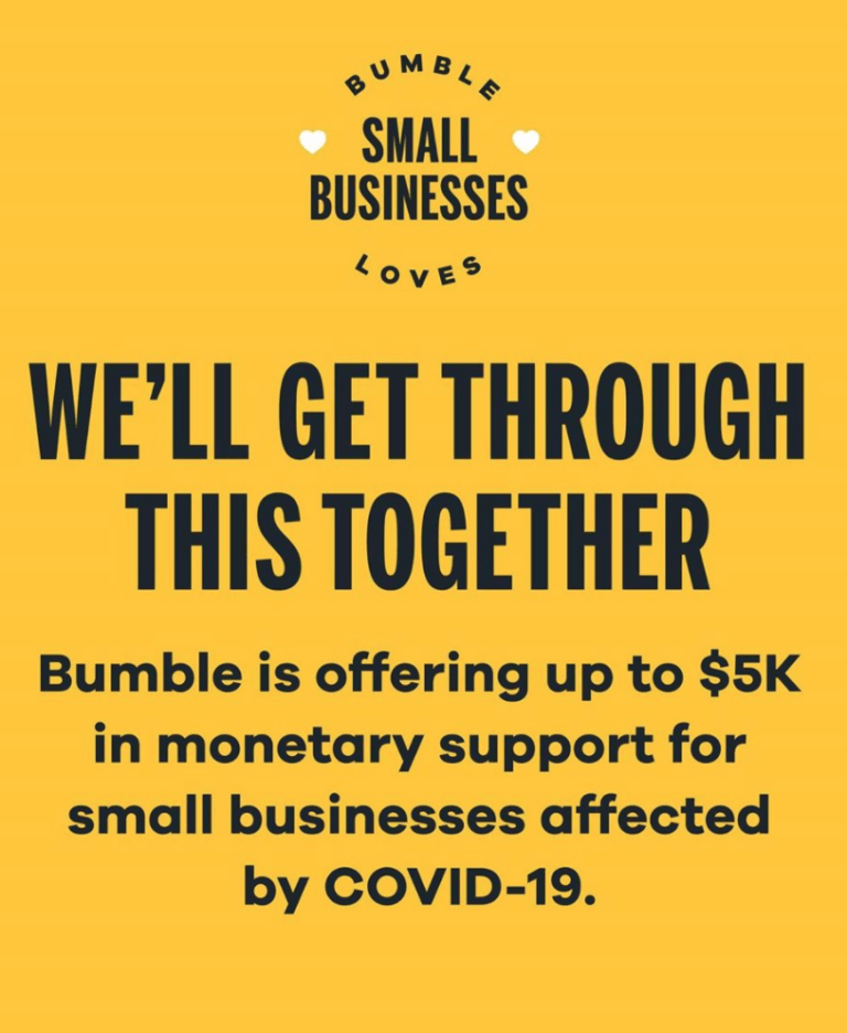 Online dating facilitators Bumble are using their brand reach and funds to offer support to small businesses in need.
